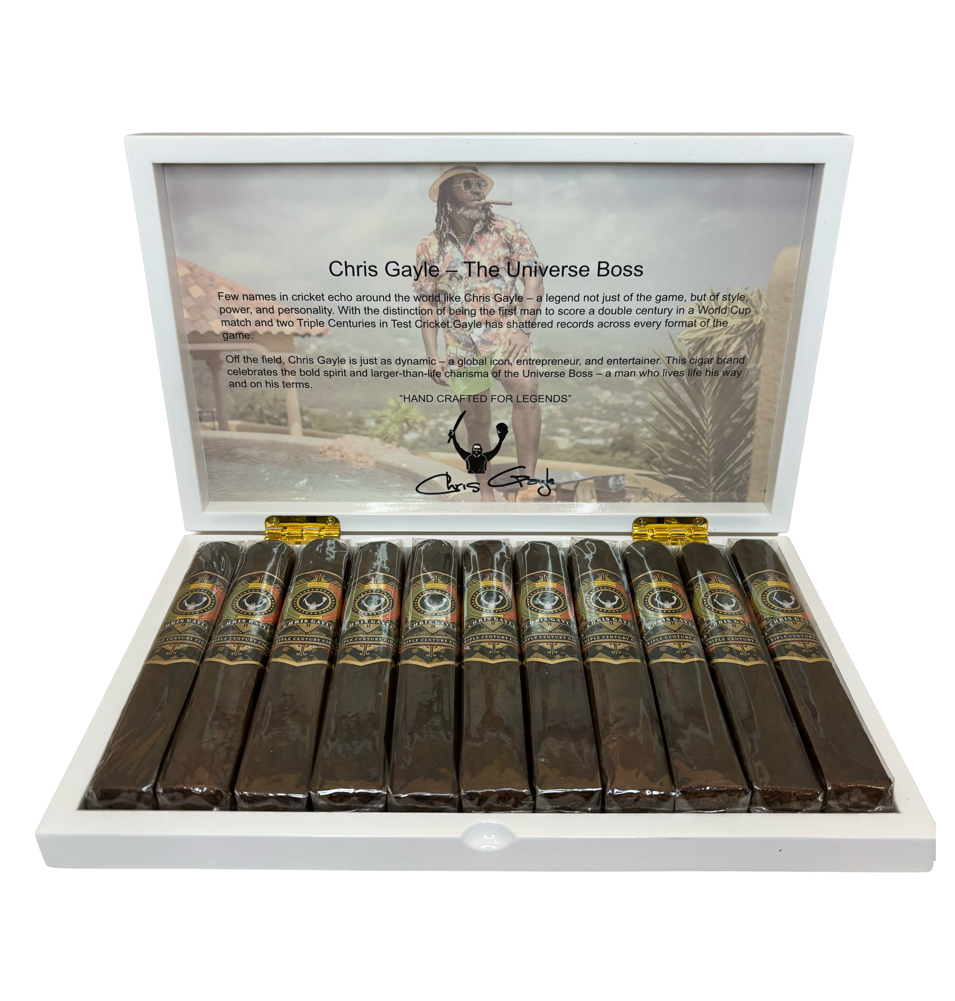 Available in **Robusto, Toro, and the newly introduced Lancero** formats, the Chris Gayle Special Edition elevates the acclaimed Legend Corojo Maduro line with box-pressed precision and unmistakable presence. Just like Gayle himself, it commands attention—impeccably crafted, unapologetically bold, and impossible to ignore.